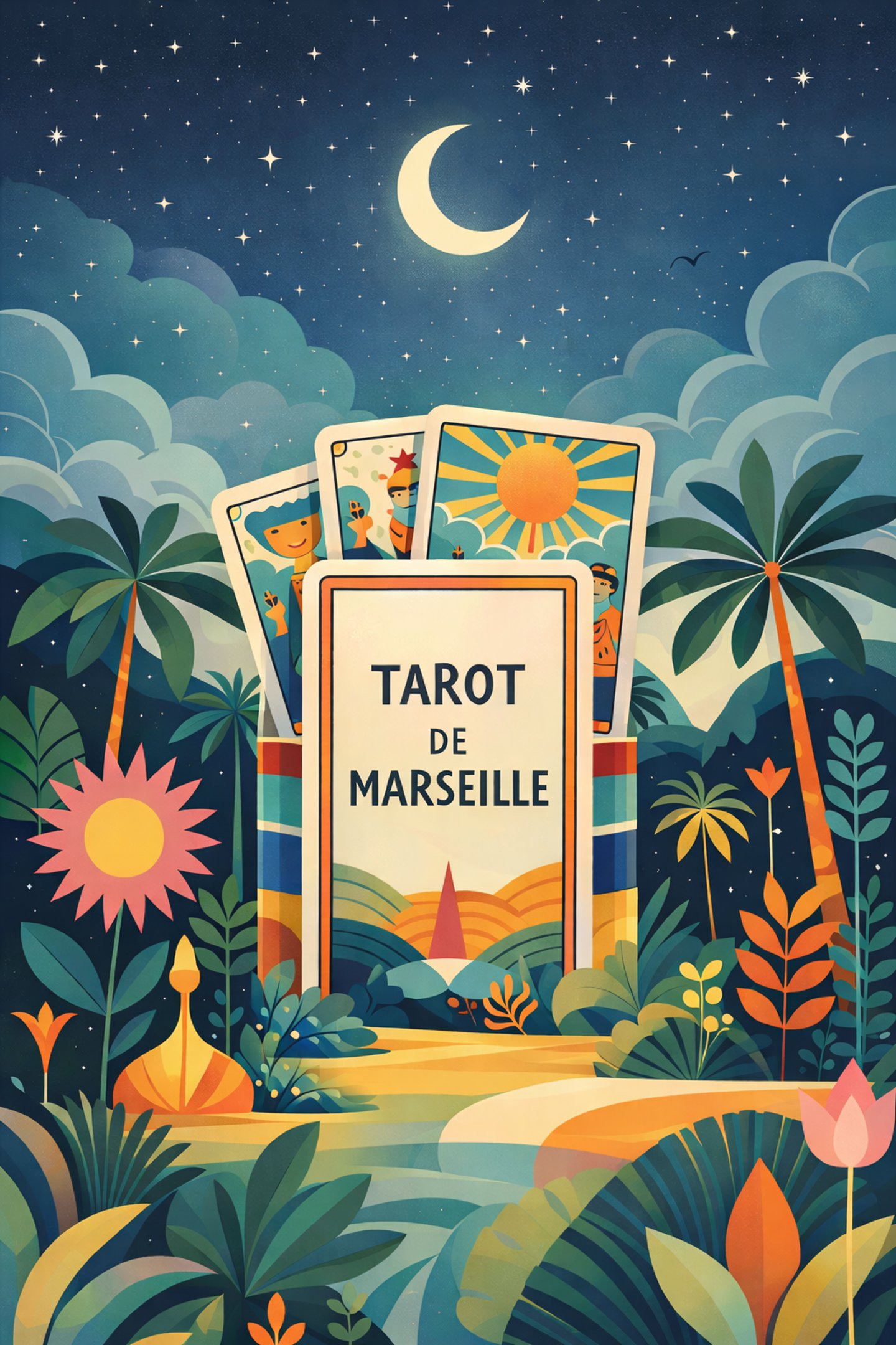 Le terme « tarot de Marseille » ne désigne pas une création purement marseillaise, mais un style iconographique standardisé : figures stylisées, couleurs franches (rouge, bleu, jaune), symboles forts comme Le Bateleur, La Papesse, L’Impératrice ou Le Monde.